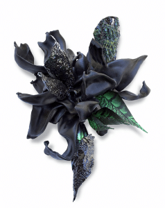 Taibe Palacios is a Chilean contemporary jewelry artist who transforms banana leaves and seaweed into wearable sculptures. Her award-winning work, included in international collections, explores the line between jewelry and art, emphasizing natural forms and organic movement.