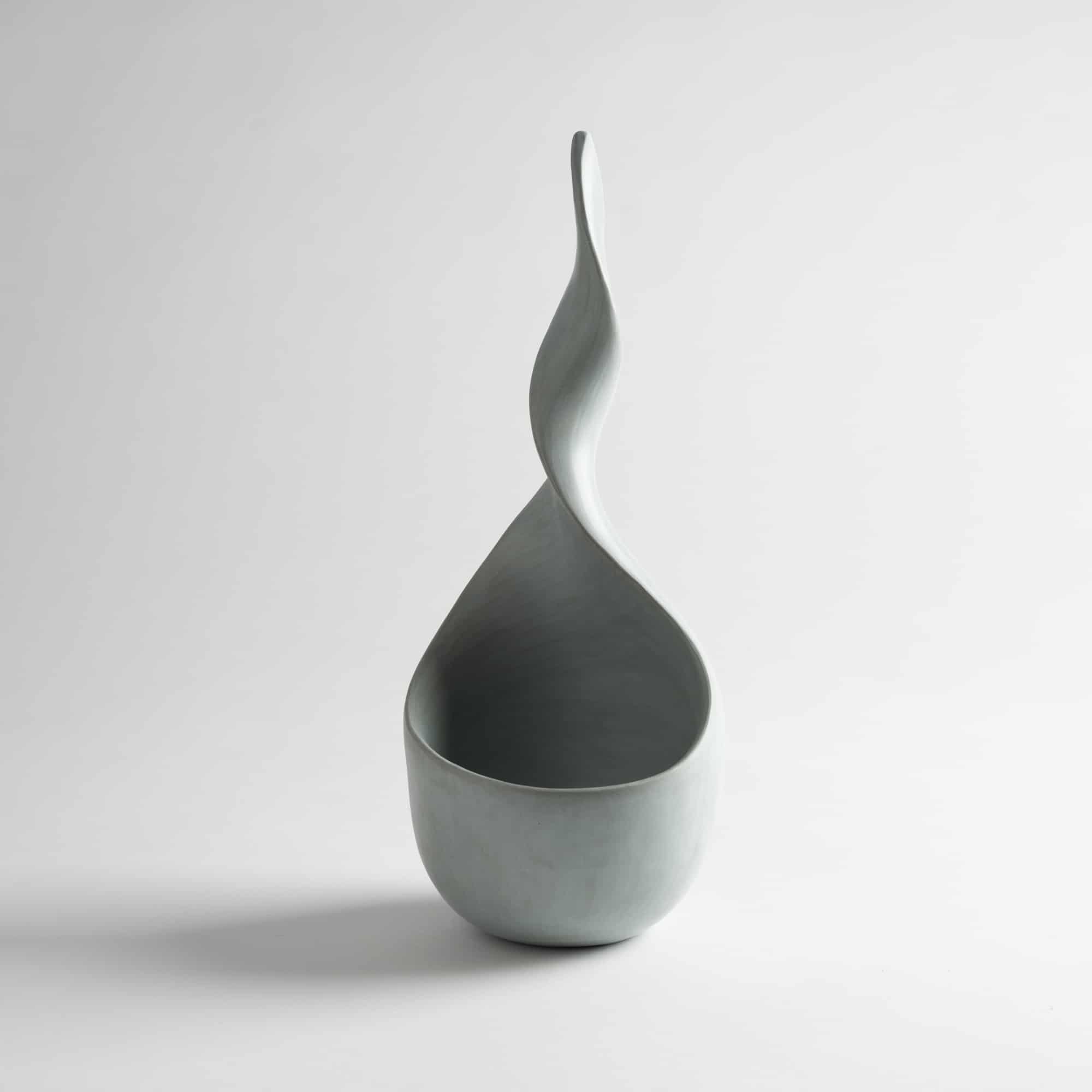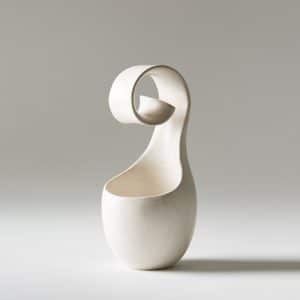 Vlassopulos’ work looks deceptively simple, belying the fact that she enjoys pushing clay to its limits. Her graceful vessels instill a sense of movement and precise balance. Although the work seems to draw ideas from nature, it is the performing arts which inspire her.