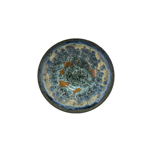 Big Ceramic plate with a multiplicity of color glazes, creating the sensation of a human iris.